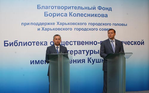 В четверг, 21 августа, состоялось подписание соглашения между Благотворительным фондом Бориса Колесникова и харьковским городским головой Михаилом Добкиным о строительстве в Харькове библиотеки общественно-политической литературы имени Евгения Кушнарева. На реализацию этого проекта планируется потратить около 50 млн грн.