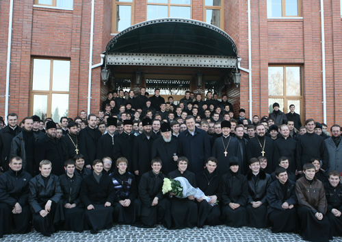 Виктор Янукович и Блаженнейший Митрополит Владимир сфотографировались на память вместе с преподавателями и студентами киевских духовных академии и семинарии.