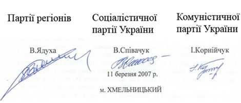 Прийнята 11 березня 2007 року на зборах представників обласних організацій Партії регіонів, Соціалістичної партії України, Комуністичної партії України