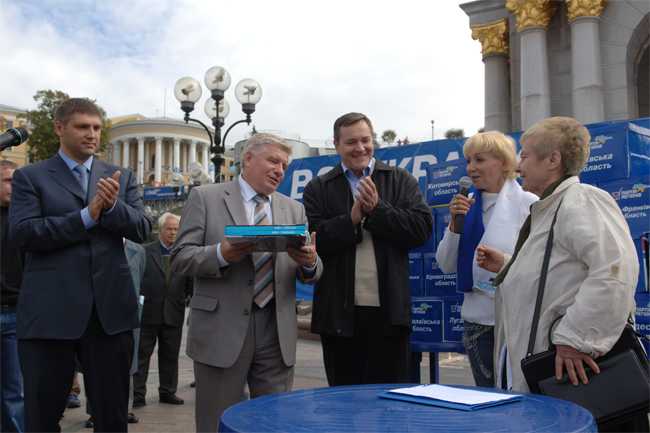 Шановні учасники нашого мітингу! Я думаю, що сьогодні ви зможете побачити, і преса це зможе зафіксувати, як буде ставитися три мільйони перший підпис «За» проведення ініційованого регіоналами референдуму. І я думаю, що всі ті громадяни, які, можливо, вже втратили віру в те, що політики можуть і будуть працювати заради простих українців, сьогодні тут, на Майдані, відновлять свою надію, віру і впевненість у тому, що є партія в Україні, яка захищає і захищатиме інтереси простих людей. І це – Партія регіонів!