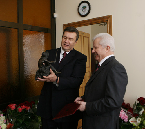 Лідер Партії регіонів Віктор Янукович особисто привітав лідера Соціалістичної партії Олександра Мороза з Днем народження. Він подарував йому бронзову статуетку і букет троянд.