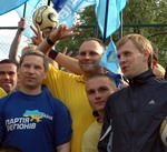 Стадіон "Буревісник" на Трухановому острові став у понеділок місцем найдивовижнішого футбольного матчу за цей рік. Наметові містечка партій ПОРА і Партії регіонів, створивши дві збірні команди, зустрілися на зеленому полі, щоб зняти напругу політичного протистояння і продемонструвати "кабінетним" політикам чесну гру.