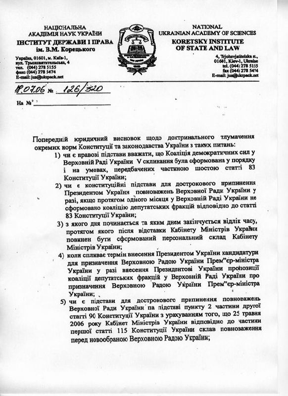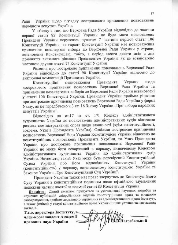 Проект Указу Президента про розпуск ВР та попередній юридичний висновок НАН України