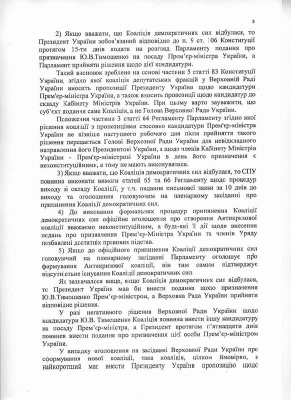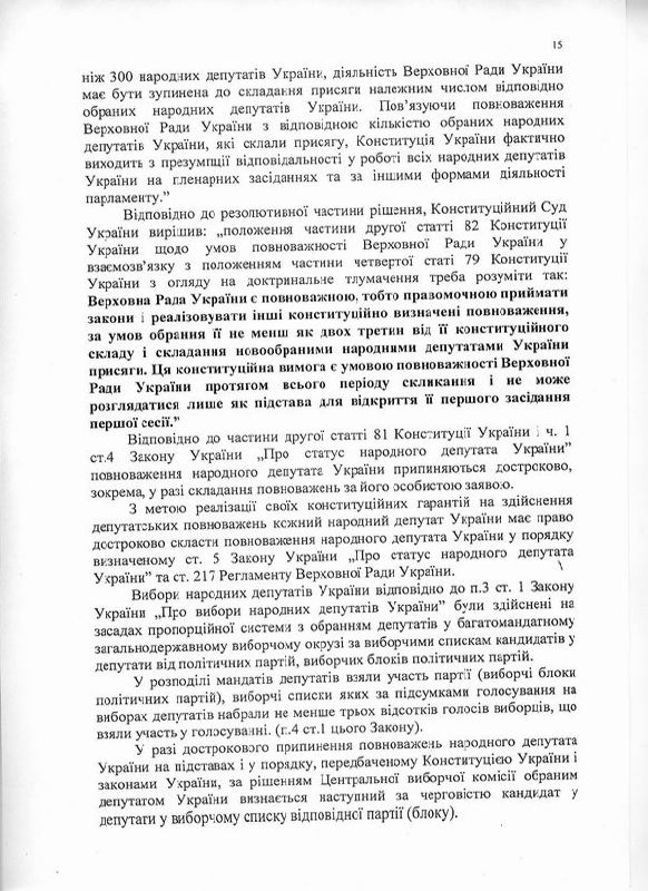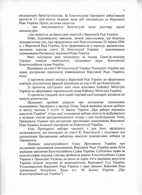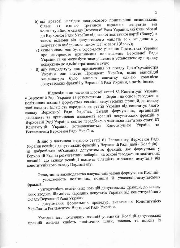 У зв’язку з бездіяльністю Верховної Ради України та її неспроможністю вирішити визначені Конституцією України завдання, зокрема, формування Конституційного Суду України та Кабінету Міністрів України, що становить загрозу для функціонування державних інститутів, забезпечення політичної стабільності в країні та виконання нею взятих зовнішньополітичних зобов’язань,
