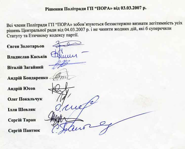 Рішення Політради ГП "ПОРА" від 3 березня 2007 року
