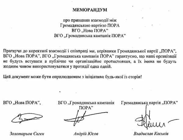 Меморандум про принципи взаємодії ГП "ПОРА" з громадськими організаціями