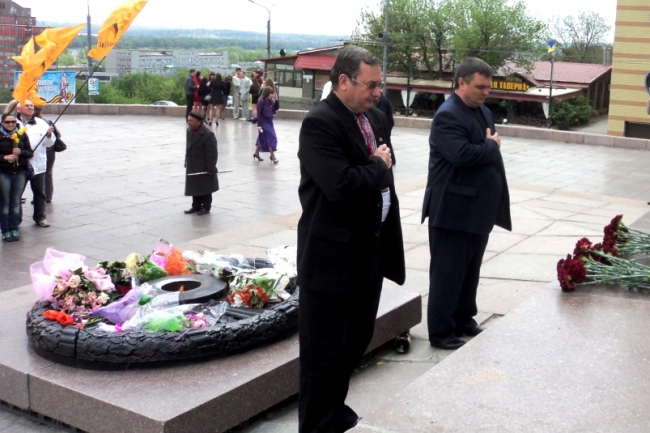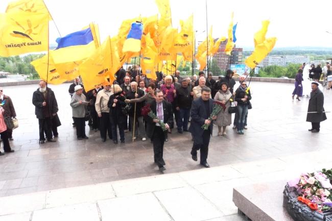 Після панахиди «нашоукраїнці» на чолі з головою обласної організації партії Віктором Гноєвим попрямували до Монумента Слави, де вшанували ветеранів-визволителів та пам’ять всіх загиблих у роки Другої світової війни.