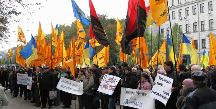 Пікетувальники тримали національні та партійні прапори, плакати «Русифікації – стоп!», «Українська мова – наша незалежність», «Захистимо рідну мову!».