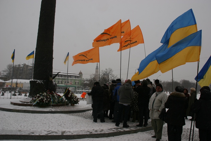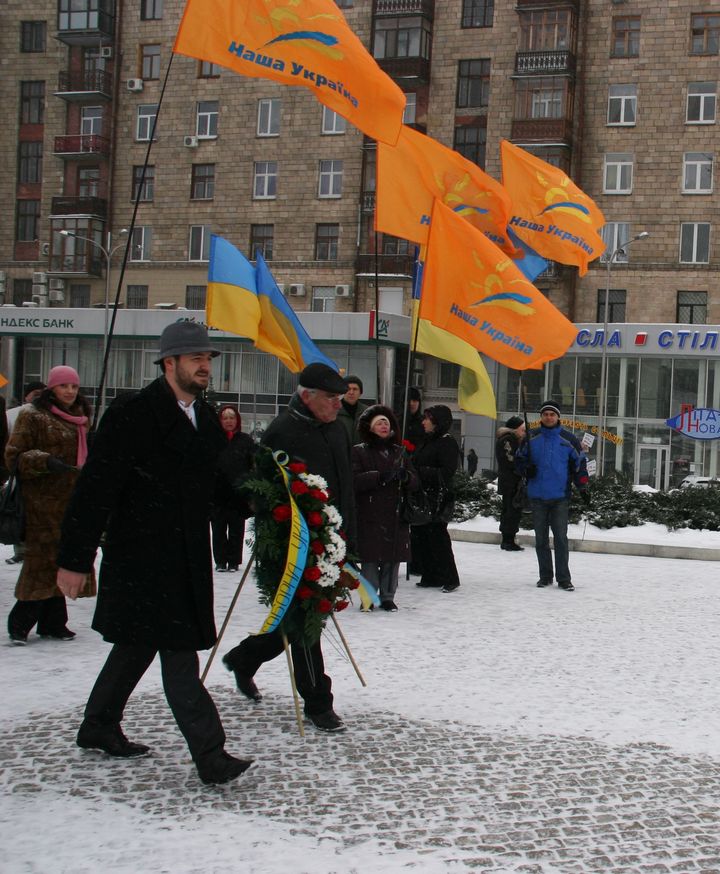 Cьогодні Харківські «нашоукарїнці» біля монументу Незалежності в обласному центрі відзначили День Соборності. Голова обласної організації «Наша Україна» Ярослав Ющенко та кілька десятків партійців взяли участь у святковій акції.