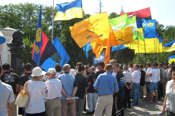 Відкриваючи урочистий мітинг, в.о. голови Кримської організації партії «Наша Україна» Владислав Хмеловський сказав: «Вже 20 років поспіль становлення та розвиток Української незалежної держави проходять в тяжких умовах. І сьогодні на часі питання національної єдності, консолідації духовного і культурного життя, кризові явища соціально-економічного розвитку країни. Сьогодні демократичні завоювання останніх років систематично нищаться, здійснюються політичні репресії проти лідерів опозиції, згортання демократії, свободи слова. У 1991 році українці мріяли про незалежну країну, якою б пишалися її громадяни, де реальна влада належить народу, де є безпека та добробут для кожного громадянина. Саме за таку країну ми продовжуємо боротися і сьогодні».