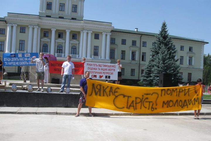 «Оновлення країни» Хмельничани в рамках кампанії «Владу - під контроль!», яку ініціював голова політради «Нашої України» Валентин Наливайченко, провела акцію протесту «Пенсійну реформу - на смітник!»
