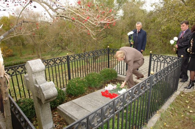 В.Огризко і О.Черевко покладають квіти до могили матері Шевченка у селі Шевченкове на Черкащині