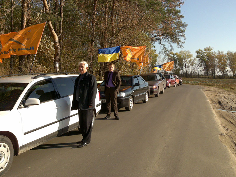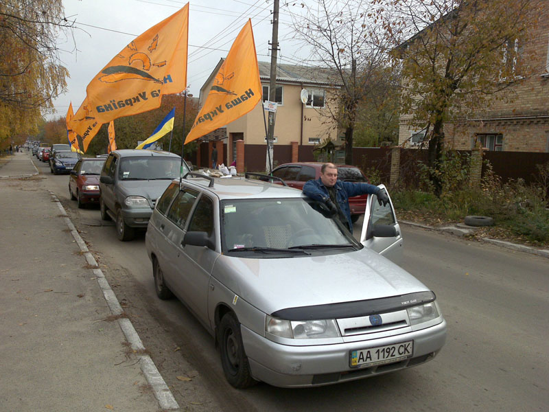 Кандидати в депутати до Києво-Святошинської районної ради (Юрій Рябченко, Леонід Орел, Олексій Линник, Ілля Коломієць та ін.) цими вихідними агітували за «Нашу Україну» під час автопробігу. Більше десяти автомобілів з національними та партійними прапорами проїхали всі населені пункти району.