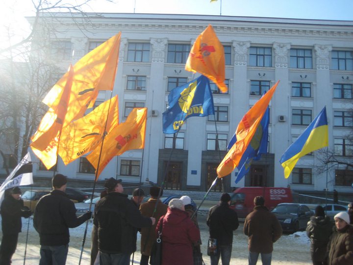 Сьогодні активісти «Нашої України» в Луганську пікетували облдержадміністрацію. Під час пікетиу партійці вимагали від керівництва області не закривати україномовні школи та припинити блюзнірську антиукраїнську політику, яка принижує людську гідність та порушує права громадян.