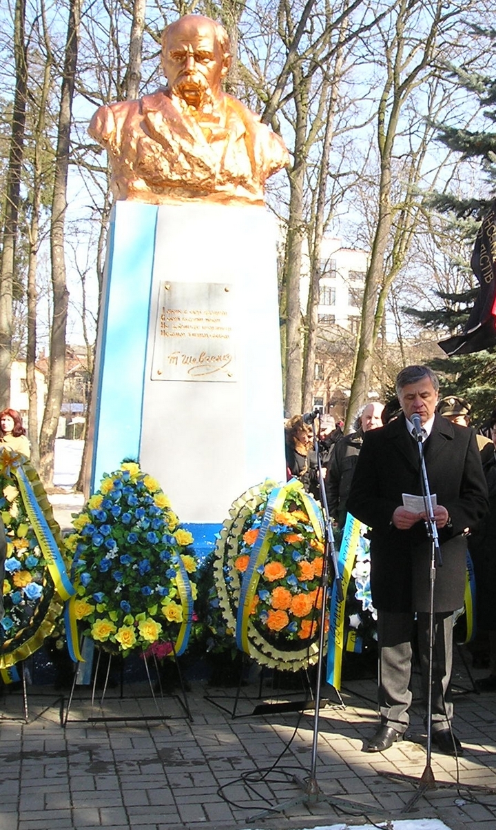 На віче виступив народний депутат України, голова обласної організації партії Зіновій Шкутяк. У своєму виступі він сказав: «Які б справи не чекали нас, українців, цього весняного дня, ми щороку відкладаємо їх, щоб прийти і вклонитися пам’яті Тараса Шевченка – великого сина нашого народу, людини, без якої ми, як нація не відбулися б».