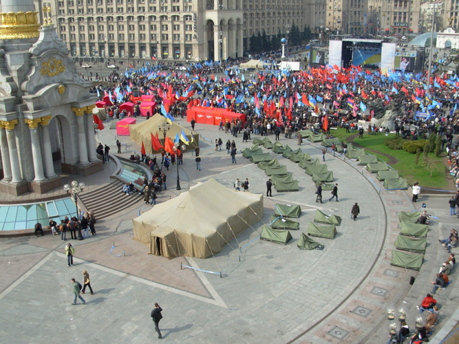 Фотографія датована 25.04.2007 р. та наочно свідчить про те, що саме на той час для встановлення наметів використовувалися стійки, закріплені у гранітному покритті Майдану Незалежності.