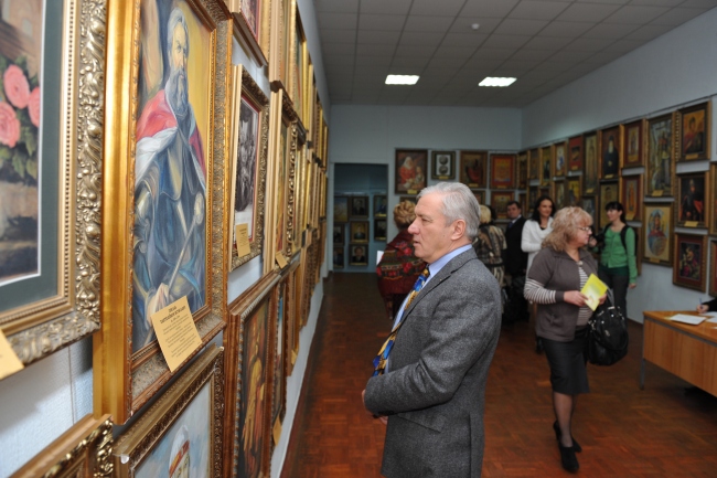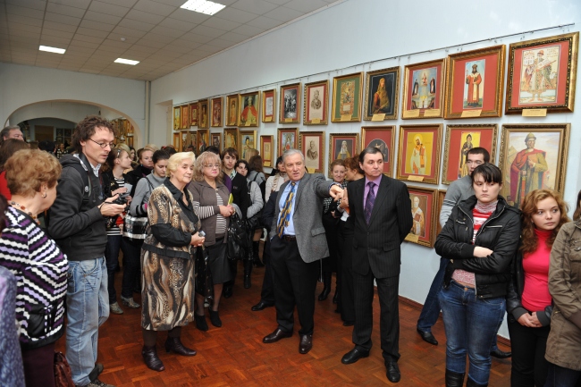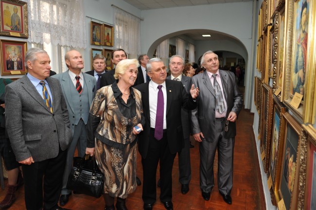 На відкритті виставки до викладачів і студентів Національного педагогічного університету звернувся його ректор, академік АПН України Віктор Андрущенко. Він подякував Петру Ющенку за унікальний подарунок і зазначив, що в портретах визначних українців відображено нерозривний процес української справи і української суті.