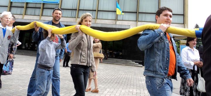 У Дніпропетровську на День Конституції розгорнули найбільший державний прапор