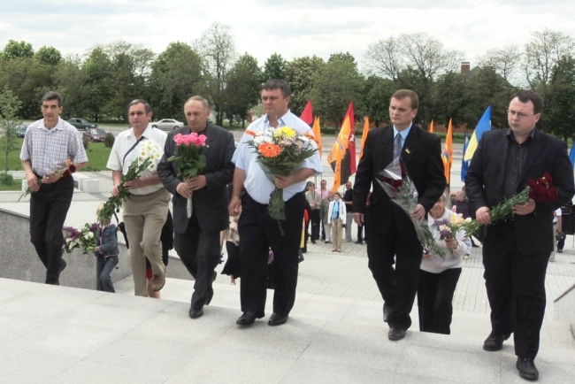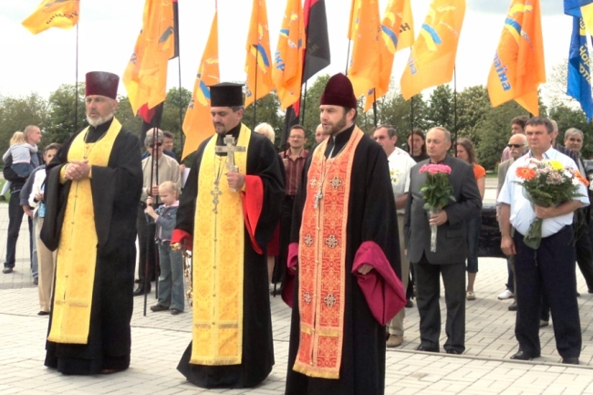 Священники Української Православної Церкви Київського Патріархату відслужили панахиду, після якої представники політичних партій і громадських організацій поклали квіти до підніжжя меморіалу та вшанували загиблих хвилиною мовчання.