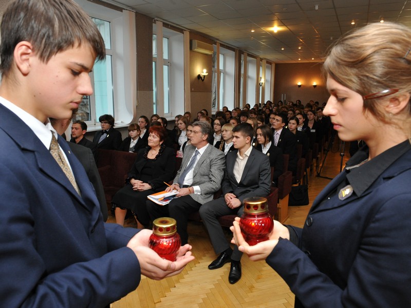 Віктор Ющенко висловив думку, що сьогодні українці ще повною мірою не зрозуміли масштабів та витоків цієї трагедії. Він розповів учням до прикладу, що в селі, де він народився, під час Голодомору загинуло 1100 людей, а за роки Великої Вітчизняної війни – 453.