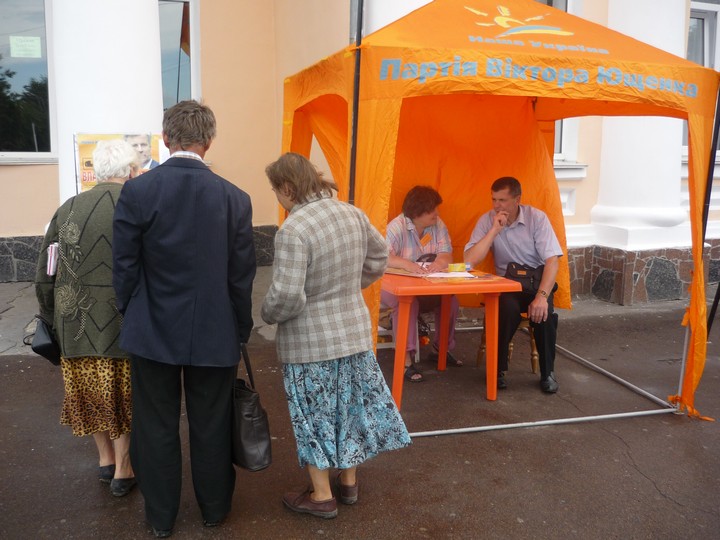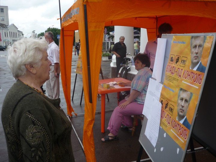 «Нашоукраїнці» в особистих бесідах з громадянами наголошували на тому, що відповідальність за критичну ситуацію в країні та погіршення життя простих людей лежить виключно на Партії регіонів та її представниках, які формують сьогодні всю вертикаль виконавчої влади.