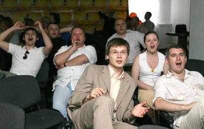 Смотрите фоторепортаж о том, как "Наша Украина" смотрела победный матч Украина-Тунис.