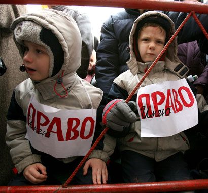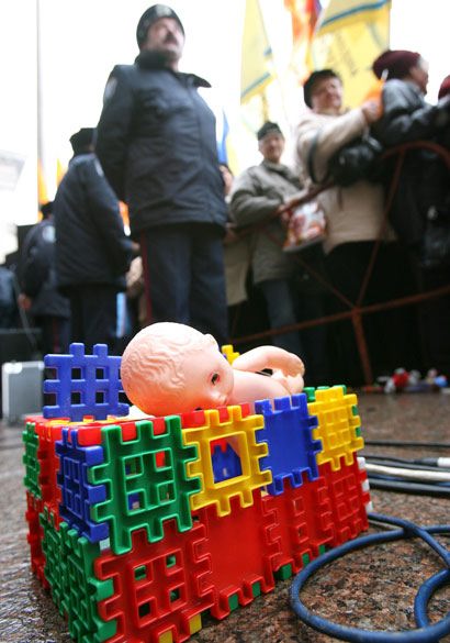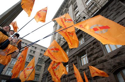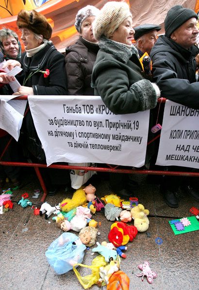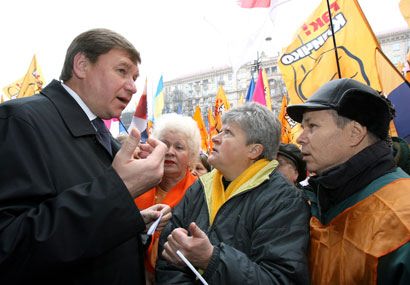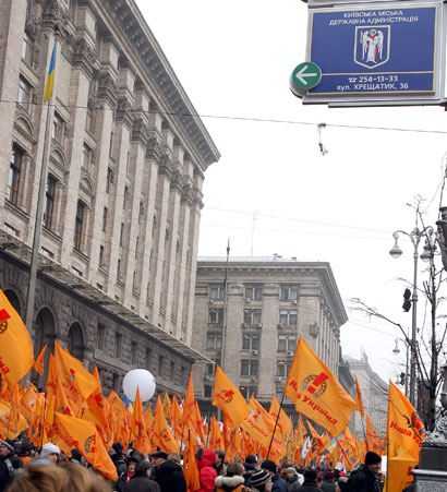 Сегодня под стенами Киевской городской администрации состоялся митинг против экономически необоснованного решения Леонида Черновецкого об увеличении тарифов на жилищно-коммунальные услуги, организованный объединением “Демократический Киев”. По обе стороны Крещатика, от ЦУМа до магазина “Фарфор-фаянс”, было размещено более 50 палаток “Нашей Украины”, БЮТ и блока Кличко. Среди митингующих в основном - пенсионеры и представители малообеспеченных слоев населения. Они выкрикивают лозунг: “Мэра прочь!”, а также держат плакаты с надписями: “Черновецкий, иди прочь!”, “Новые тарифы - ярмо для киевлян”, “Новые тарифы - новый голодомор” и т.п.