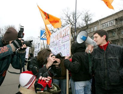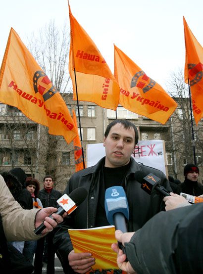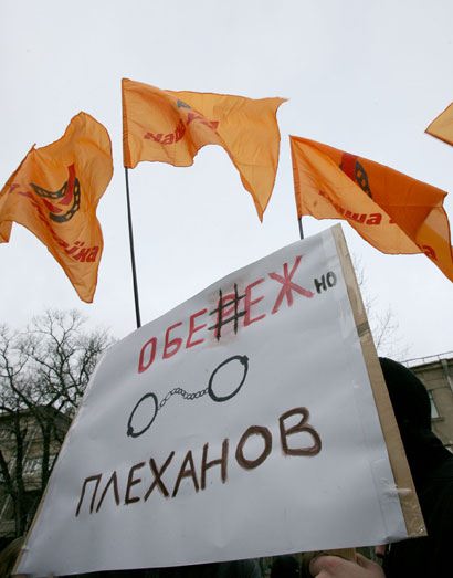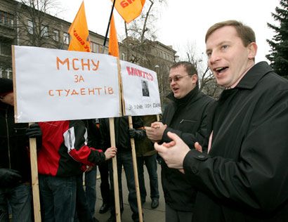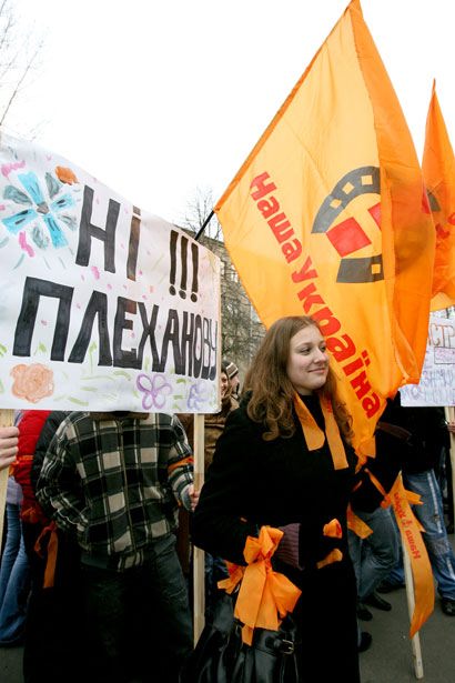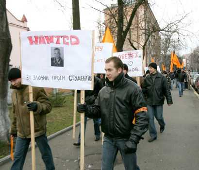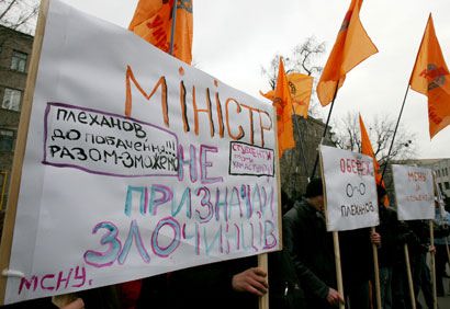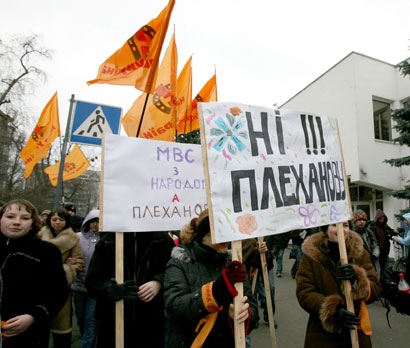 Сегодня, в День украинской милиции, Молодежный Союз “Наша Украина” провел пикет возле здания МВД с целью не пустить на рабочее место Николая Плеханова, который в 2004 году возглавлял УМВС в Сумской области и был причастен к избиению и арестам сумских студентов во время президентской кампании, а сейчас назначен заместителем Министра внутренних дел. Молодежь с оранжевыми лентами, флагами “Нашей Украины”, плакатами собралась возле центрального входа Министерства. В руках пикетировщиков плакаты: "Министр, не назначай преступников!", "Осторожно - Плеханов", "МВД - с народом, а Плеханов - нет!", "Наша Украина" - за студентов". Они скандировали "Разом нас багато, нас не подолати!", "Плеханов - геть!".