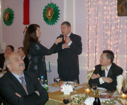 Вечером в Русском драматическом театре прошел губернаторский бал и аукцион. Благотворительный вечер начался во внутреннем дворике театра. Гости по красной дорожке подходили к столику, за которым Садыков угощал их горячим глинтвейном. Поддержать организатора бала приехали также его коллеги - губернаторы Одесской и Запорожской областей Иван Плачков и Евгений Червоненко.