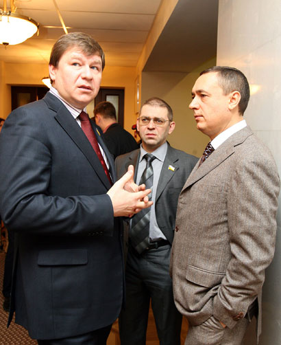От парламентской фракции “Наша Украина” поддержать депутатов Киевгорсовета пришли Николай Мартыненко, Михаил Поживанов и Валерий Борисов.