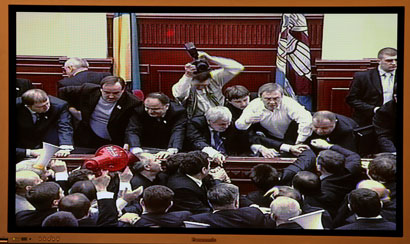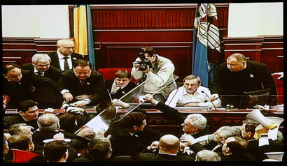 Сегодня состоялось очередное заседание Киевгорсовета. Команда Черновецкого отказалась идти на компромиссы с объединением “Демократический Киев”, продолжив непрозрачное рассмотрение земельных вопросов вместо решения проблемы тарифов на ЖКУ и наполнения городского бюджета. Поэтому “Демократический Киев” и народные депутаты от “Нашей Украины” и БЮТ блокировали трибуну. Впрочем, Черновецкий на встрече с Президентом заявил, что "он (вопрос поднятия тарифов на жилищно-коммунальные услуги - ред.) нашел поддержку, и эти тарифы восприняты населением". Смотрите наш фоторепортаж.