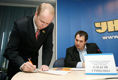 Сегодня в Киеве пятнадцать молодежных общественных организаций по инициативе “Молодежного Союза “Наша Украина” создали Комитет контроля над действиями власти со стороны молодежи. Как сообщил первый заместитель главы молодых “нашеукраинцев” Алексей Гриценко, к такому решению активную украинскую молодежь побудили последние тревожные тенденции возвращения к власти одиозных личностей, в частности, назначение заместителем Министра внутренних дел Плеханова, который в 2004 году возглавлял УМВД в Сумской области и был причастен к избиению и арестам сумских студентов во время президентской кампании.