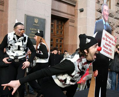 Митингующие устроили театрализованное представление "Черновецкий и бесы"