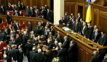Сегодня открылась ІІІ сессия Верховной Рады V созыва. Первый пленарный день сессии начался с существенным опозданием. Депутаты от парламентской оппозиции блокировали трибуну с требованием отчета премьера относительно возможной передачи газотранспортной системы Украины в управление другому государству и внесения законопроекта, который сделает невозможными любые приватизационные действия относительно газотранспортной системы. В результате продолжительных совещаний с участием лидеров всех фракций удалось достигнуть компромисса и ІІІ сессия Верховной Рады таки началась. Смотрите фоторепортаж.
