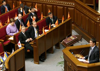 Лидер фракции "Наша Украина" зачитывает заявление против передачи России газотранспортной системы Украины