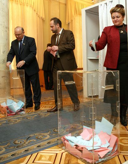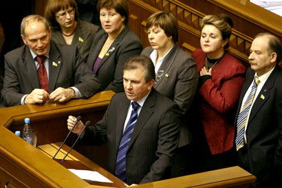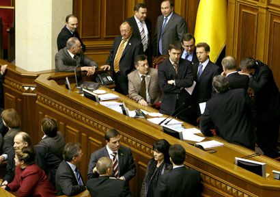 Сегодня Верховная Рада продолжила свою работу. В частности, в парламенте состоялось голосование, в результате которого Уполномоченным ВРУ по правам человека была избрана Нина Карпачева. На этой кандидатуре настаивали “антикризовики”. “Мне кажется, что Украина сегодня многое утратила в смысле защиты прав человека”, - прокомментировала это избрание народный депутат, член фракции “Наша Украина” Лилия Григорович. Лидер фракции "Наша Украина" Вячеслав Кириленко убежден, что было бы намного эффективнее избрать Уполномоченным по правам человека политически незаангажированного, известного правозащитника Евгения Захарова. Также состоялись выборы заместителя главы Верховной Рады. Им был избран Николай Томенка (БЮТ). Кроме того, “Наша Украина”, блокируя трибуну, не допустила незаконного рассмотрения постановления об увольнении судьи Мукачевского горрайонного суда Владимира Монича. Смотрите наш фоторепортаж.