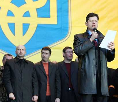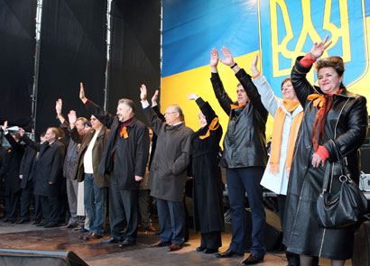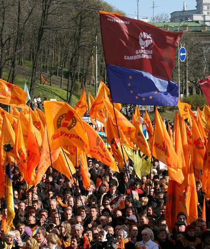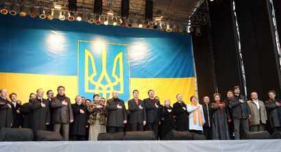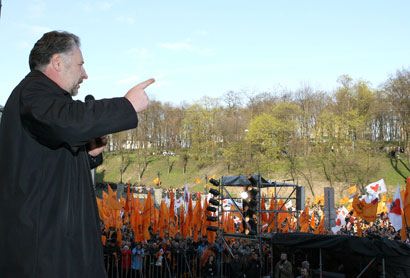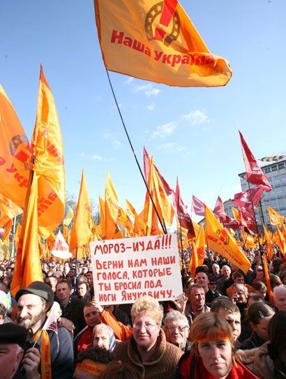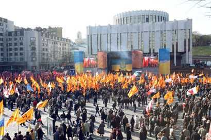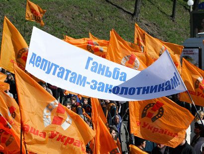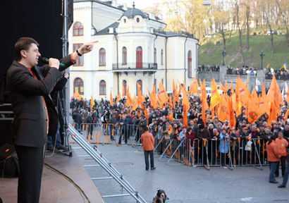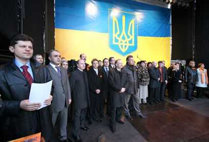 На Европейской площади в Киеве состоялся митинг под лозунгом “зРаду - Геть!”. Перед митингующими выступили Тарас Петриненко, группы “Мандры” и “Гайдамаки”. На митинге присутствовали депутаты от “Нашей Украины” Наталия Прокопович, Ксения Ляпина, Руслан Князевич, Павел Жебривский, Ольга Герасимьюк, Борис Беспалый, Лилия Григорович, Юрий Ключковский, Игорь Криль и другие. Перед участниками акции протеста выступили глава “Нашей Украины” Вячеслав Кириленко, лидер “Народной Самообороны” Юрий Луценко и один из лидеров БЮТ – Александр Турчинов. Смотрите наш фоторепортаж.