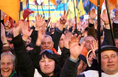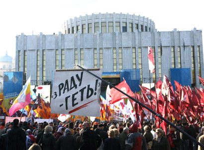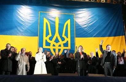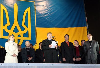 На Европейской площади прошла акция объединенной оппозиции “Мятежу – нет! Выборам – да!”. Перед людьми выступили группы “Моторолла”, ТНМК и Тарас Петриненко. После окончания концертной программы на митинге выступили лидер “Нашей Украины” Вячеслав Кириленко, лидер БЮТ Юлия Тимошенко и лидер “Народной самообороны” Юрий Луценко. После окончания митинга было провозглашена его резолюция. Смотрите наш фоторепортаж.