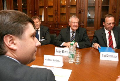 Сегодня состоялась встреча главы партии “Наша Украина” Вячеслава Кириленко с Генеральным секретарем Совета Европы Терри Девисом. На ней также присутствовали Юрий Ехануров, Николай Онищук и Ольга Герасимьюк. В своем вступительном слове Вячеслав Кириленко подчеркнул, что оппозиция будет настаивать на досрочных выборах, которые в соответствии с новым указом Президента состоятся 24 июня. Он напомнил, что вчера на консультациях представителей оппозиции и коалиции не были достигнуты никакие конкретные договоренности, и высказал убеждение, что любое решение Конституционного Суда не решит политического кризиса.