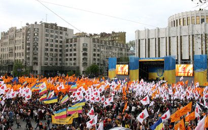 На Европейской площади прошел митинг объединенной оппозиции “Через выборы к согласию". На площади собралось рекордное количество людей. На акцию пришли также народные депутаты пятого созыва от “Нашей Украины” Наталья Прокопович, Владимир Вьязивский, Зиновий Шкутяк, Владимир Карпук, Борис Беспалый, Ксения Ляпина и представители других демократических оппозиционных сил.
