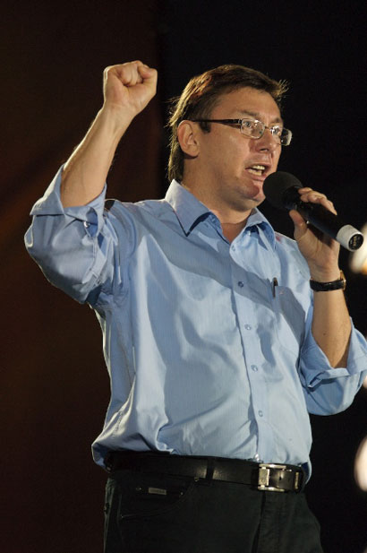 Когда Луценко начал свое выступление, из толпы сразу исчезли все агитаторы Партии регионов, которые до этого размахивали сине-белыми флагами.