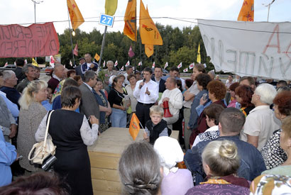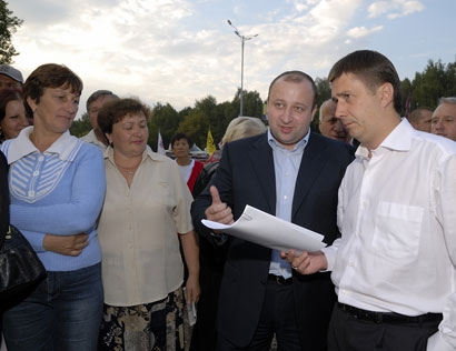 Глава Политрады Блока “Наша Украина - Народная Самооборона” Вячеслав Кириленко встретился с людьми, которые развернули пикет на трассе Киев-Борисполь, протестуя против рейдерского захвата их земельных паев.