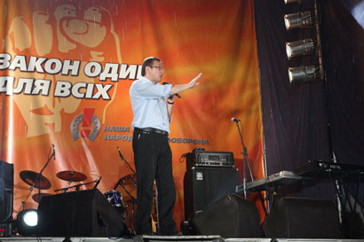 Вчера лидер Блока «Наша Украина – Народная Самооборона» Юрий Луценко в рамках Всеукраинского агитационного тура «Для людей, а не для политиков», побывал в Белой Церкви и выступил на центральной площади города. Несмотря на дождь, послушать Юрия Луценка пришло несколько тысяч жителей Белой Церкви. На центральной площади города развевались флаги “Нашей Украины”, “Народной Самообороны” а так же государственные прапора. Во время митинга выступал Александр Пономарев. Смотрите наш фоторепортаж.