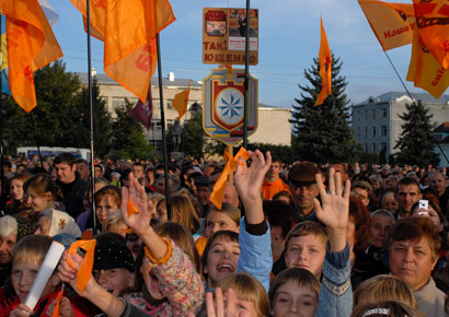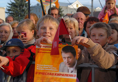 Вчера глава Политсовета Блока “Наша Украина-Народная Самооборона” Вячеслав Кириленко посетил Тернопольщину. Он дал пресс-конференцию, а также выступил на митинге в Подволочиске. На нем Кириленко рассказал об обязательствах Блока перед избирателями, необходимости отмены депутатской неприкосновенности для уничтожения коррупции в высших эшелонах власти и т.п. Смотрите наш фоторепортаж.