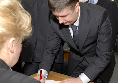 Центральная избирательная комиссия на очередном заседании зарегистрировала 60 народных депутатов Украины от блока “Наша Украина - Народная Самооборона”. Депутаты, присутствовавшие на заседании, получили удостоверение соответствующего образца.