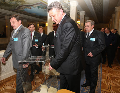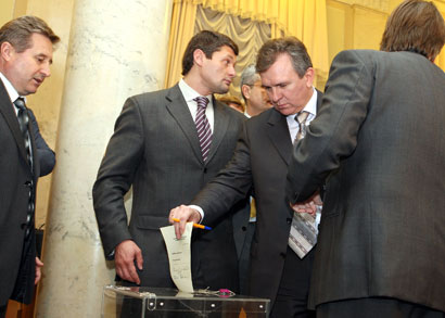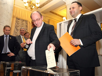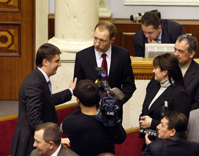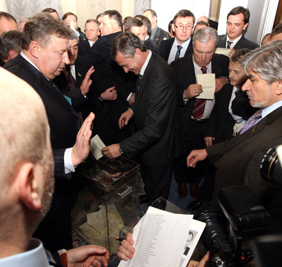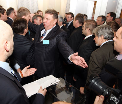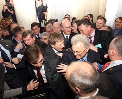 Вчера путём тайного голосования член Блока «Наша Украина – Народная Самооборона» Арсений Яценюк был избран главой Верховной Рады шестого созыва. Об этом с парламентской трибуны заявил глава Счётной комиссии Николай Шершун. В ходе голосования не обошлось без столкновений, поскольку представители оппозиции пытались помешать волеизъявлению народных депутатов. Новоизбранный спикер обратился со вступительной речью к парламентариям, после чего в зале заседаний прозвучал гимн Украины. Смотрите наш фоторепортаж.