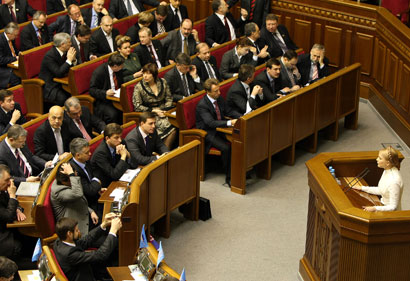 Сегодня на заседании Верховной Рады Украины премьер-министром Украины была утверждена лидер БЮТ Юлия Тимошенко. Народные депутаты, согласно достигнутым в пятницу договоренностям, голосовали поднятием рук и озвучиванием собственного мнения. За кандидатуру премьера проголосовало 226 народных избранников.