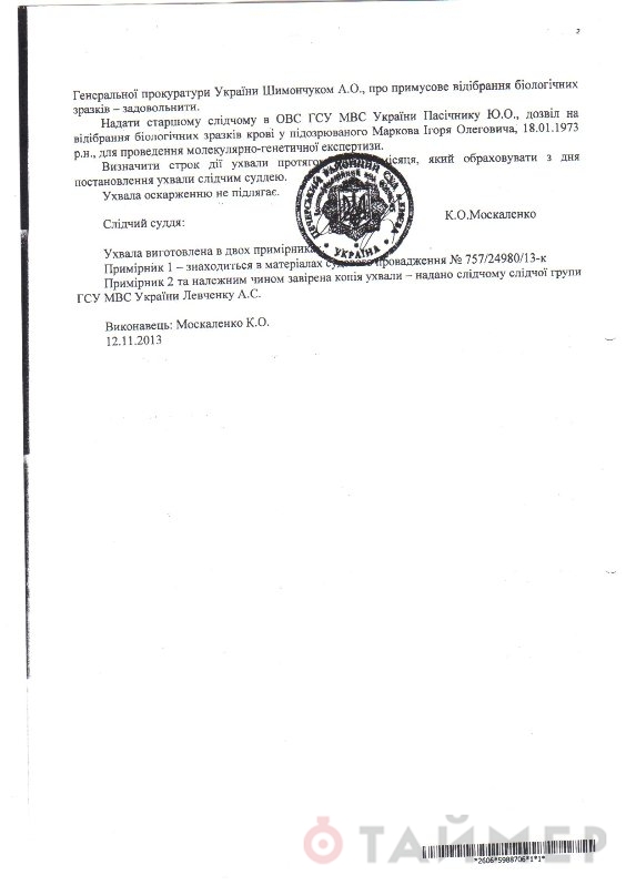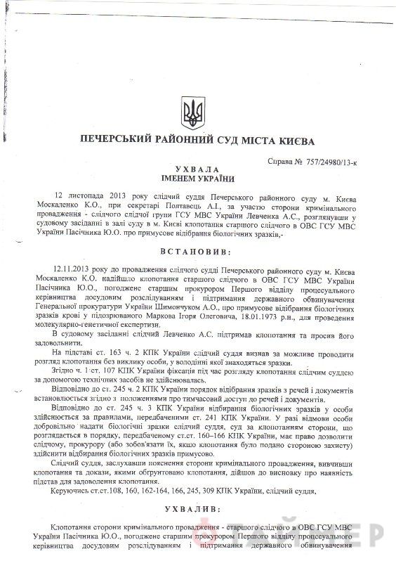 «В решении суда действительно говорится, что следователь Пасечник, и только он, имеет право взять образцы крови. Однако слова «принудительно» в этом документе нет, так как законодательство не предусматривает проведения такой процедуры в принудительном порядке. И даже Печерский суд Киева не решился вписывать слово «принудительно» в своё определение», — считает Александр Казарновский.