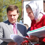 Алексея Костусева как долгожданного гостя местные жители встретили хлебом и солью, а вот председателя Киевской райадминистрации Владимира Сушкова - тыквой, чем он был весьма возмущён и отказался принять презент.