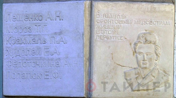 Именно тут жили фронтовые медсёстры, которые спасали жизни людей во Время Великой Отечественной. Спустя почти 60 лет на этом месте появилась мемориальная доска.